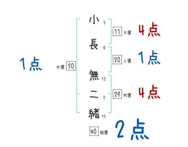 小長無二緒さんの画数の鑑定結果