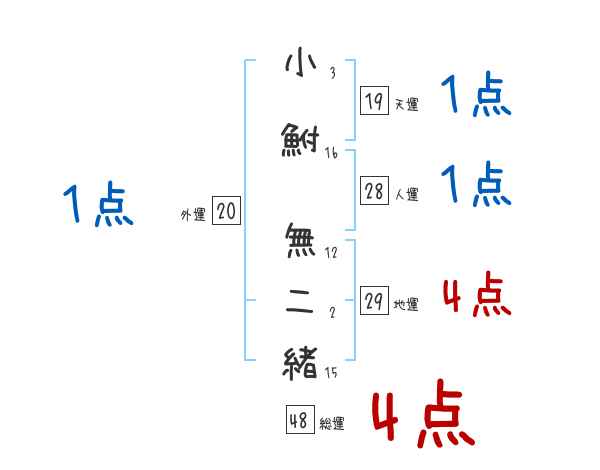 小鮒無二緒さんの画数の鑑定結果