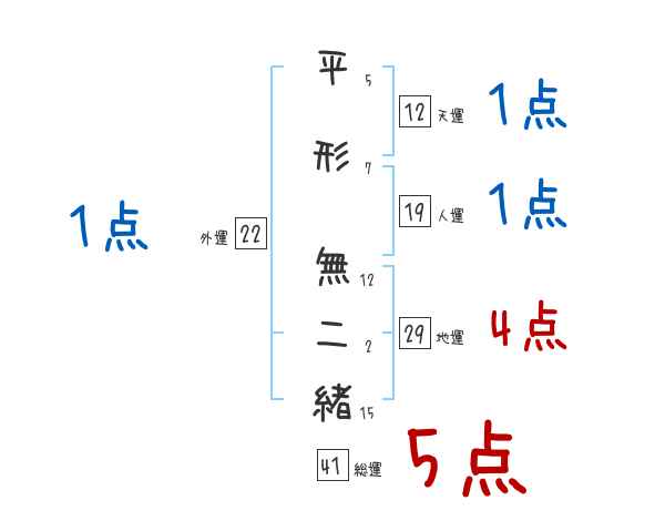天運![]() | 平形無二緒さんの天運は12画の1つ星!簡単な失敗で諦めてしまいやすいかも。着実に行動すると良いでしょう。 家系が持つ宿命的な運勢を表します。祖先から受け継いだ苗字ですので自分の力が及びません。家柄を象徴します。 |