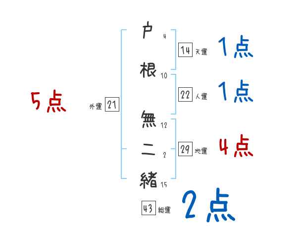 戸根無二緒さんの画数の鑑定結果