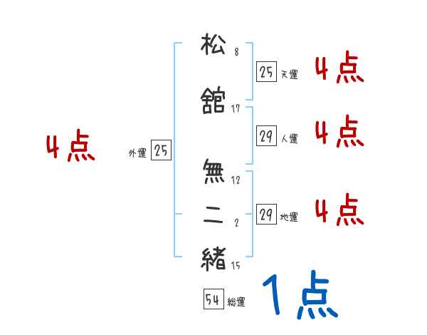 家系が持つ宿命的な運勢を表します。祖先から受け継いだ苗字ですので自分の力が及びません。家柄を象徴します。