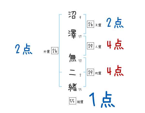 沼澤無二緒さんの画数の鑑定結果