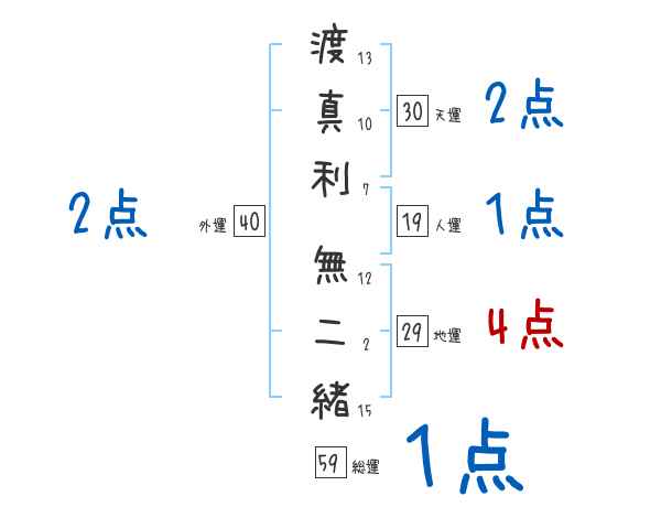 渡真利無二緒さんの画数の鑑定結果