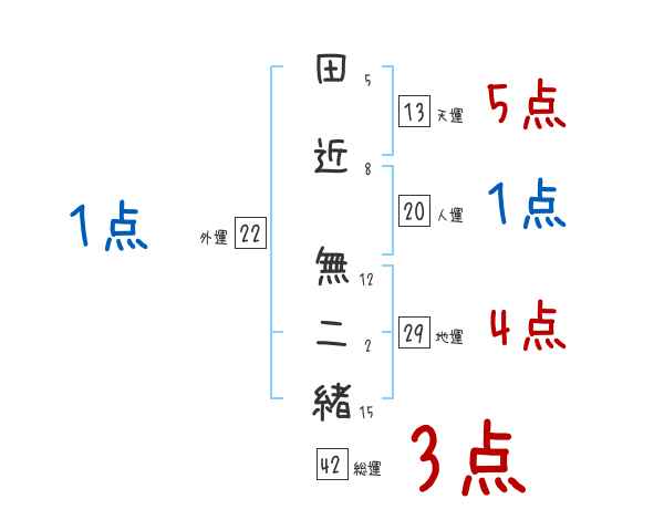 田近無二緒さんの画数の鑑定結果
