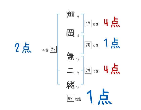 外運![]() | 畑岡無二緒さんの外運は26画の2つ星!波瀾万丈かも。信頼できる人を大事にしましょう。 生活面を象徴する運勢です。外部から受ける影響力を表し、結婚運、家庭運や職場、環境への順応性を表します。 |