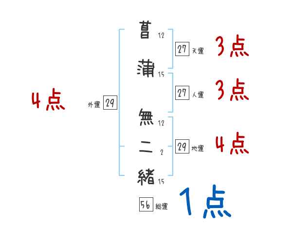 菖蒲無二緒さんの画数の鑑定結果
