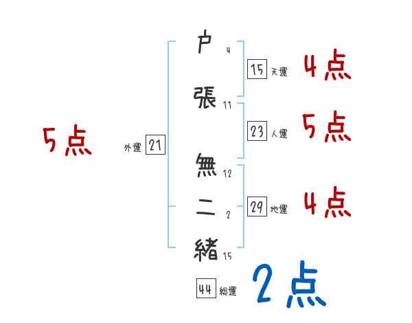 戸張無二緒さんの画数の鑑定結果