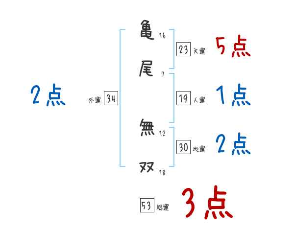 亀尾無双さんの画数の鑑定結果