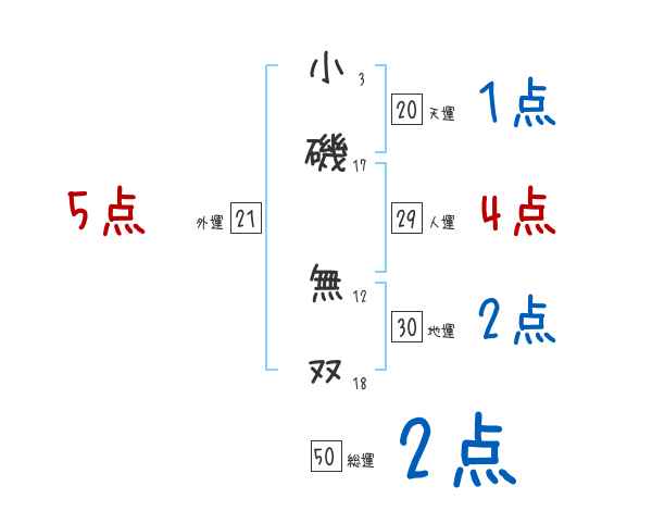 小磯無双さんの画数の鑑定結果