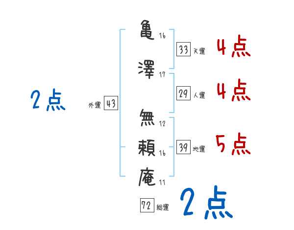 亀澤無頼庵さんの画数の鑑定結果