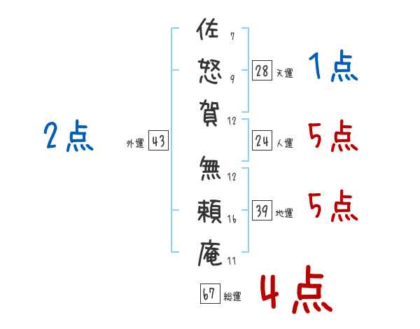 佐怒賀無頼庵さんの画数の鑑定結果