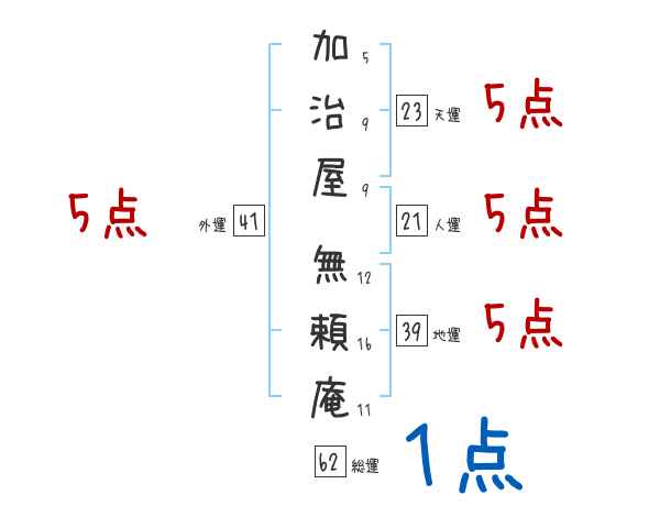 加治屋無頼庵さんの画数の鑑定結果
