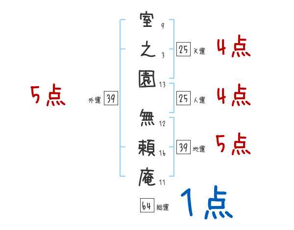 室之園無頼庵さんの画数の鑑定結果