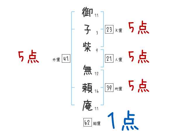 御子柴無頼庵さんの画数の鑑定結果