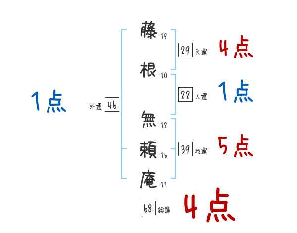 総運![]() | 藤根無頼庵さんの総運は68画の4つ星!潜在能力が高く集中力が高い。勤勉に励み発展する。 あなたの人生を表す1番重要な運勢です。生涯を通じて影響する総合運となり、主に50歳以降の晩年期に影響を及ぼします。 |