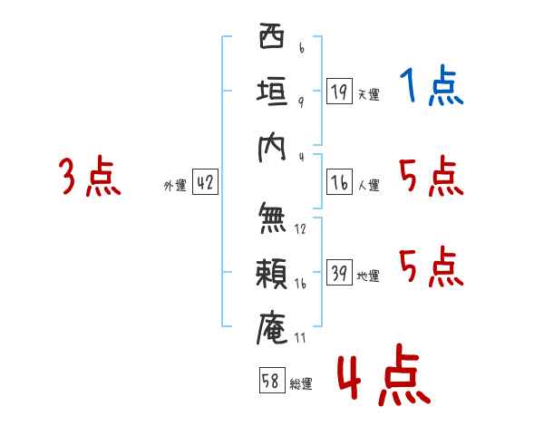 西垣内無頼庵さんの総運は58画の4つ星