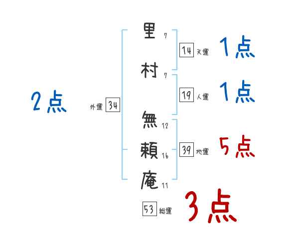 総運![]() | 里村無頼庵さんの総運は53画の3つ星!やや見栄っ張りで虚栄心がある。散財に注意。 あなたの人生を表す1番重要な運勢です。生涯を通じて影響する総合運となり、主に50歳以降の晩年期に影響を及ぼします。 |