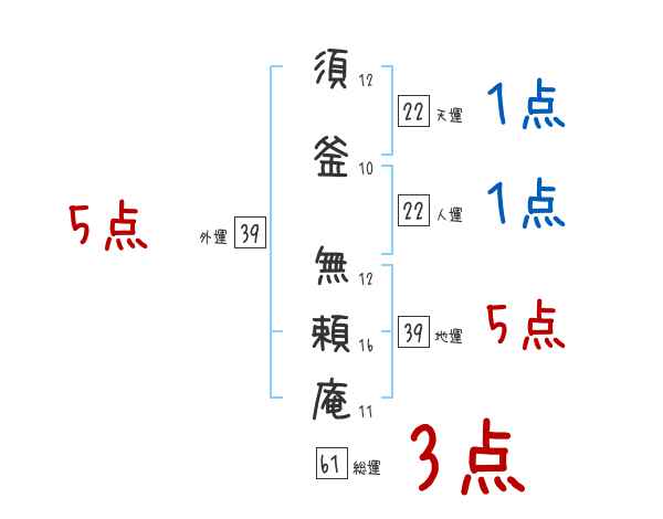 地運![]() | 須釜無頼庵さんの地運は39画の5つ星!社交性に優れ人望が厚い。人の上に立ち成功する。 個性を表す基礎的な運勢です。性格形成や対人関係、行動力など家庭環境に影響されます。主に誕生してから20歳くらいまでの若年期の運勢を表します。 |