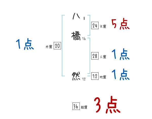 八橋然さんの画数の鑑定結果