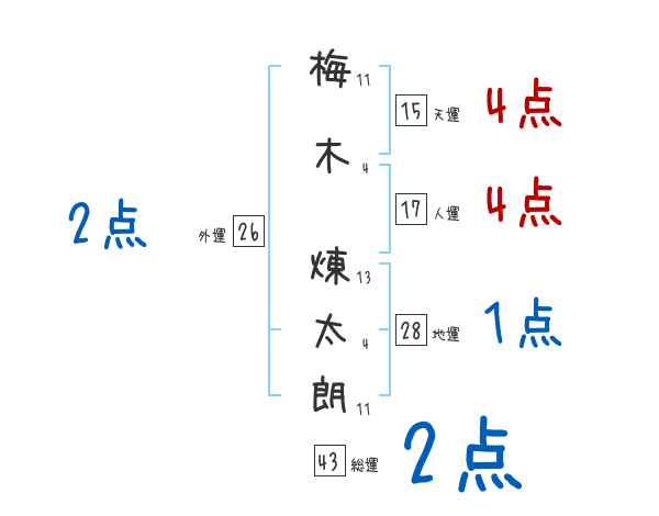 梅木煉太朗さんの画数の鑑定結果
