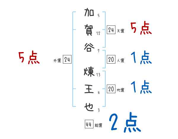 加賀谷煉王也さんの画数の鑑定結果