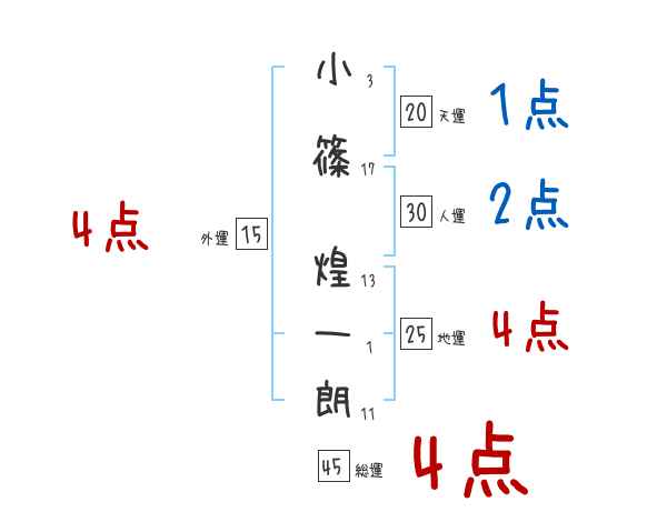 小篠煌一朗さんの画数の鑑定結果