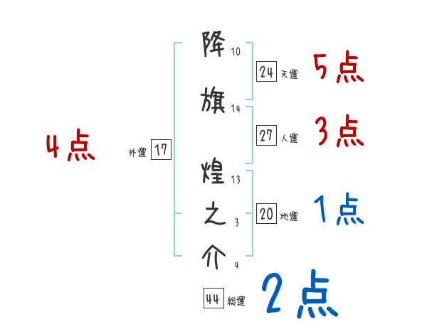 降旗煌之介さんの画数の鑑定結果