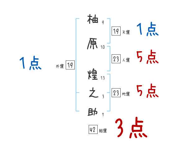 外運![]() | 柚原煌之助さんの外運は19画の1つ星!優れた才能を持ちますが、協調性が足りないことも。周りの人と協力する事を意識しましょう。 生活面を象徴する運勢です。外部から受ける影響力を表し、結婚運、家庭運や職場、環境への順応性を表します。 |
