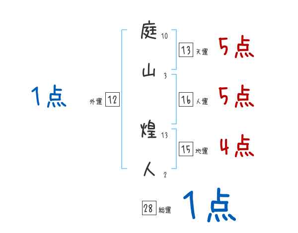 庭山煌人さんの画数の鑑定結果