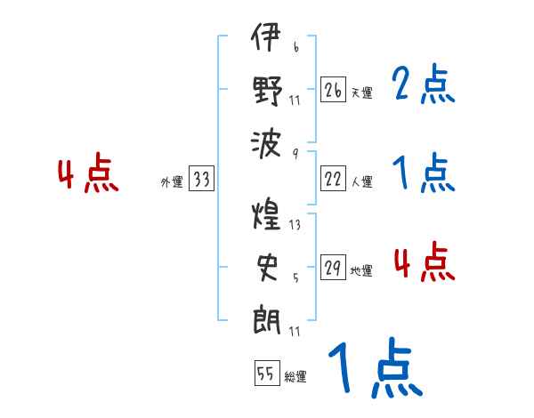人運![]() | 伊野波煌史朗さんの人運は22画の1つ星!努力することが苦手ないっぽう手先が器用。芸術性にも優れる。 性格や才能などを表す2番目に重要な運勢です。人間関係や協調性、社会的な成功に影響します。主に20歳から50歳ぐらいまでの中年期の運勢を表します。 |