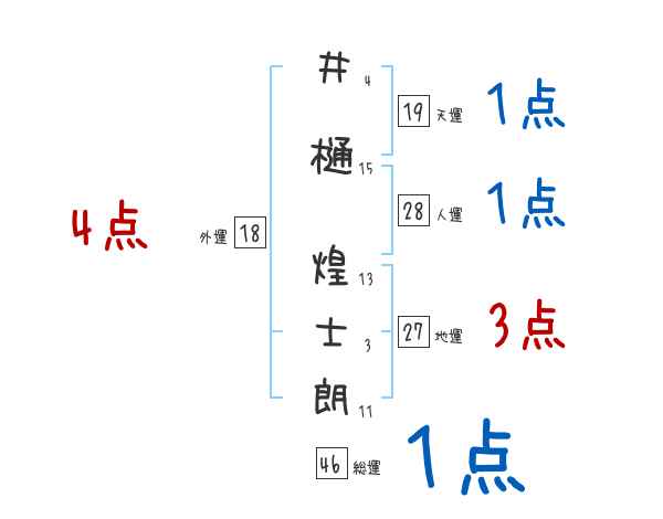 人運![]() | 井樋煌士朗さんの人運は28画の1つ星!家庭環境に注意。スポーツで活躍できる能力があるかも。 性格や才能などを表す2番目に重要な運勢です。人間関係や協調性、社会的な成功に影響します。主に20歳から50歳ぐらいまでの中年期の運勢を表します。 |