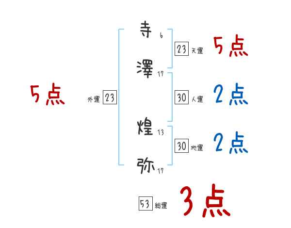 寺澤煌弥さんの画数の鑑定結果