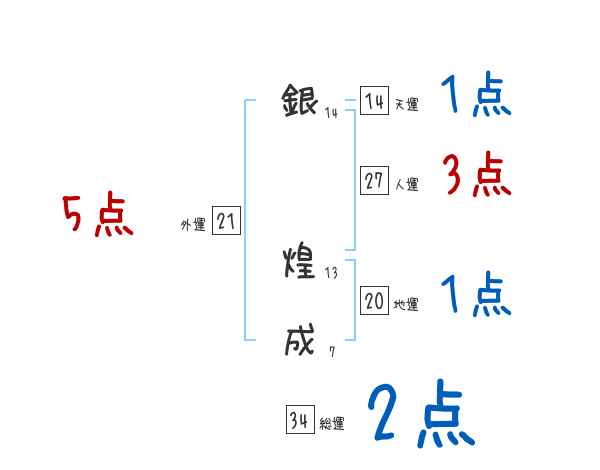 銀煌成さんの画数の鑑定結果