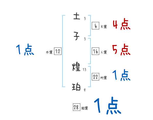 土子煌珀さんの画数の鑑定結果