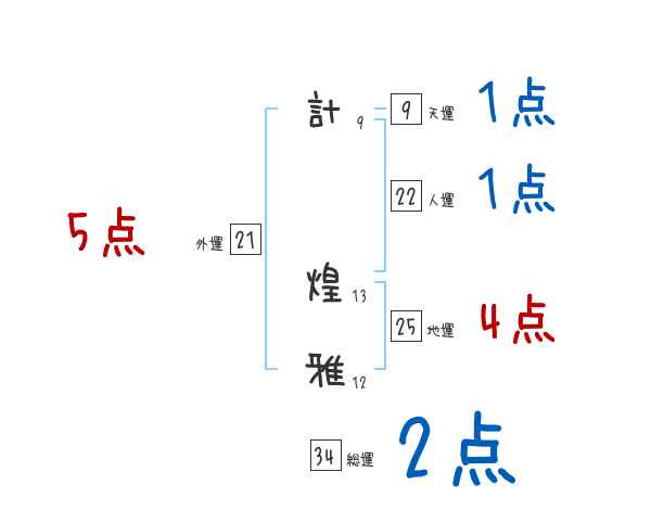 計煌雅さんの画数の鑑定結果