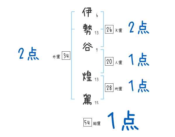 総運![]() | 伊勢谷煌駕さんの総運は54画の1つ星!トラブルが多いかも。周りをよく見て協調して過ごしましょう。 あなたの人生を表す1番重要な運勢です。生涯を通じて影響する総合運となり、主に50歳以降の晩年期に影響を及ぼします。 |