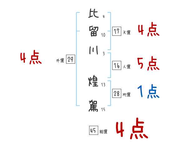 天運![]() | 比留川煌駕さんの天運は17画の4つ星!積極的な行動力。地位を気づき財産を手に入れる。純粋な心と直感力。 家系が持つ宿命的な運勢を表します。祖先から受け継いだ苗字ですので自分の力が及びません。家柄を象徴します。 |