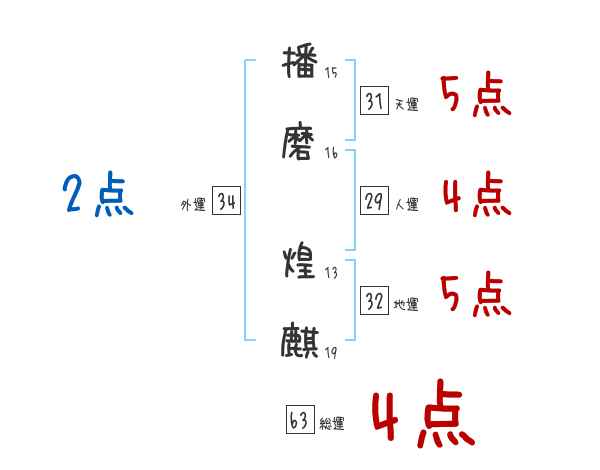 播磨煌麒さんの画数の鑑定結果