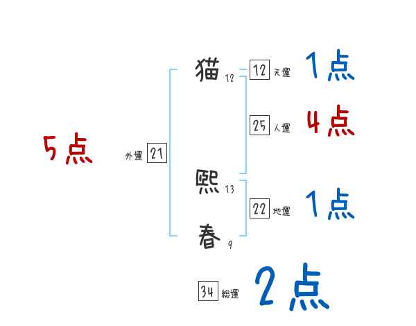 猫煕春さんの画数の鑑定結果
