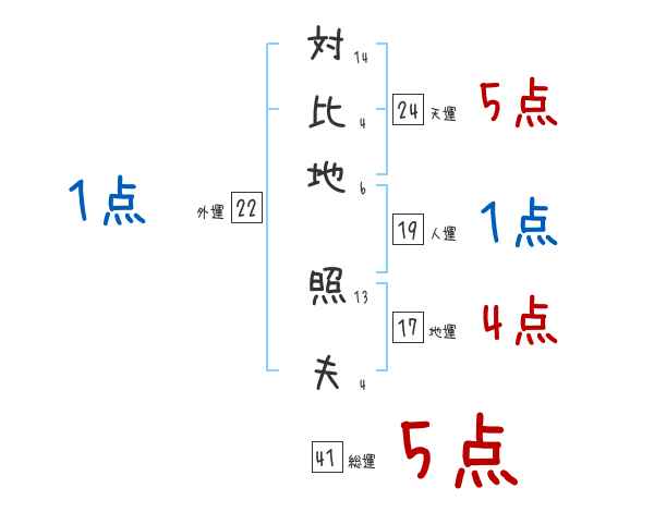 対比地照夫さんの画数の鑑定結果