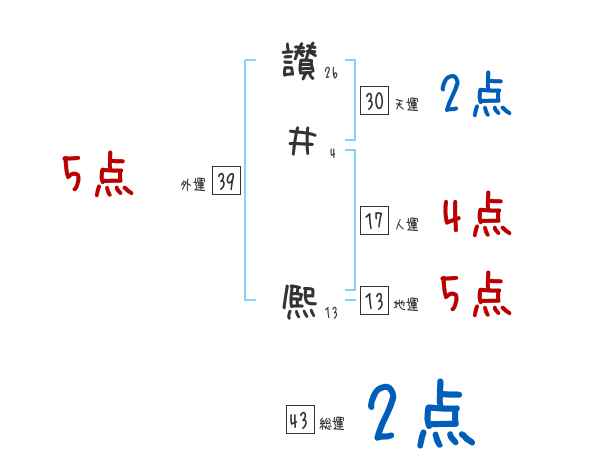 讃井熈さんの外運は39画の5つ星