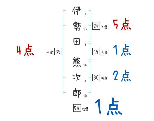 外運![]() | 伊勢田熊次郎さんの外運は35画の4つ星!温厚な性格で感受性が高い。穏和な性格で人望が厚い。 生活面を象徴する運勢です。外部から受ける影響力を表し、結婚運、家庭運や職場、環境への順応性を表します。 |