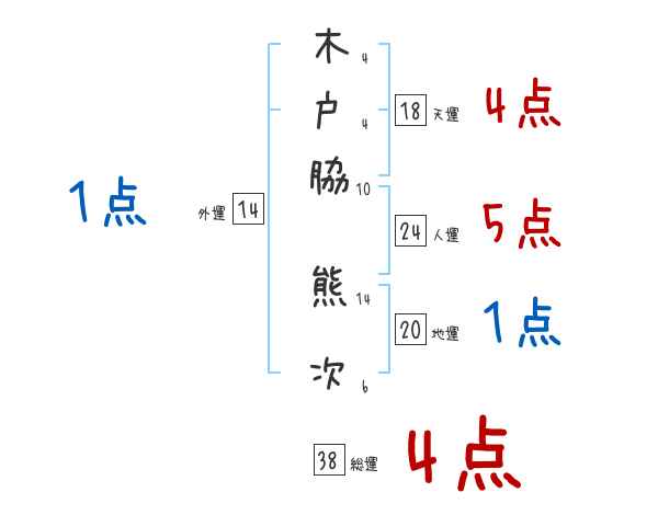 木戸脇熊次さんの画数の鑑定結果