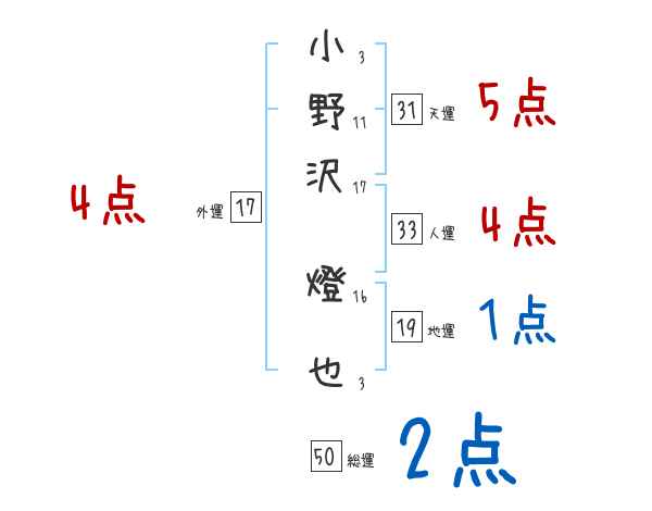 外運![]() | 小野沢燈也さんの外運は17画の4つ星!積極的な行動力。地位を気づき財産を手に入れる。純粋な心と直感力。 生活面を象徴する運勢です。外部から受ける影響力を表し、結婚運、家庭運や職場、環境への順応性を表します。 |