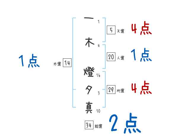一木燈夕真さんの画数の鑑定結果