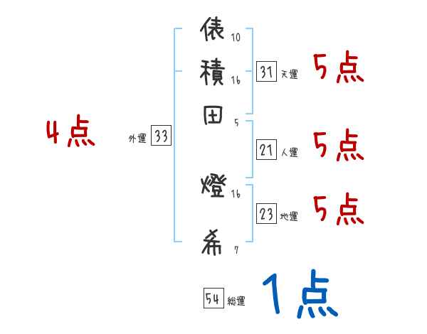人運![]() | 俵積田燈希さんの人運は21画の5つ星!統率力がある。独立し成功する。名誉を手に入れる。 性格や才能などを表す2番目に重要な運勢です。人間関係や協調性、社会的な成功に影響します。主に20歳から50歳ぐらいまでの中年期の運勢を表します。 |