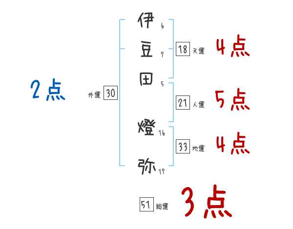 伊豆田燈弥さんの画数の鑑定結果
