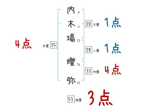 地運![]() | 内木場燈弥さんの地運は33画の4つ星!権力志向でプライドが高い。勇気があり運を切り開き成功する。 個性を表す基礎的な運勢です。性格形成や対人関係、行動力など家庭環境に影響されます。主に誕生してから20歳くらいまでの若年期の運勢を表します。 |