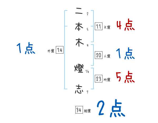 二本木燈志さんの画数の鑑定結果