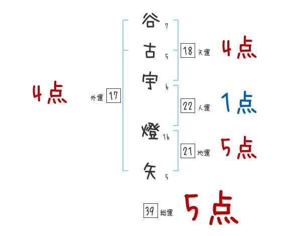 谷古宇燈矢さんの画数の鑑定結果